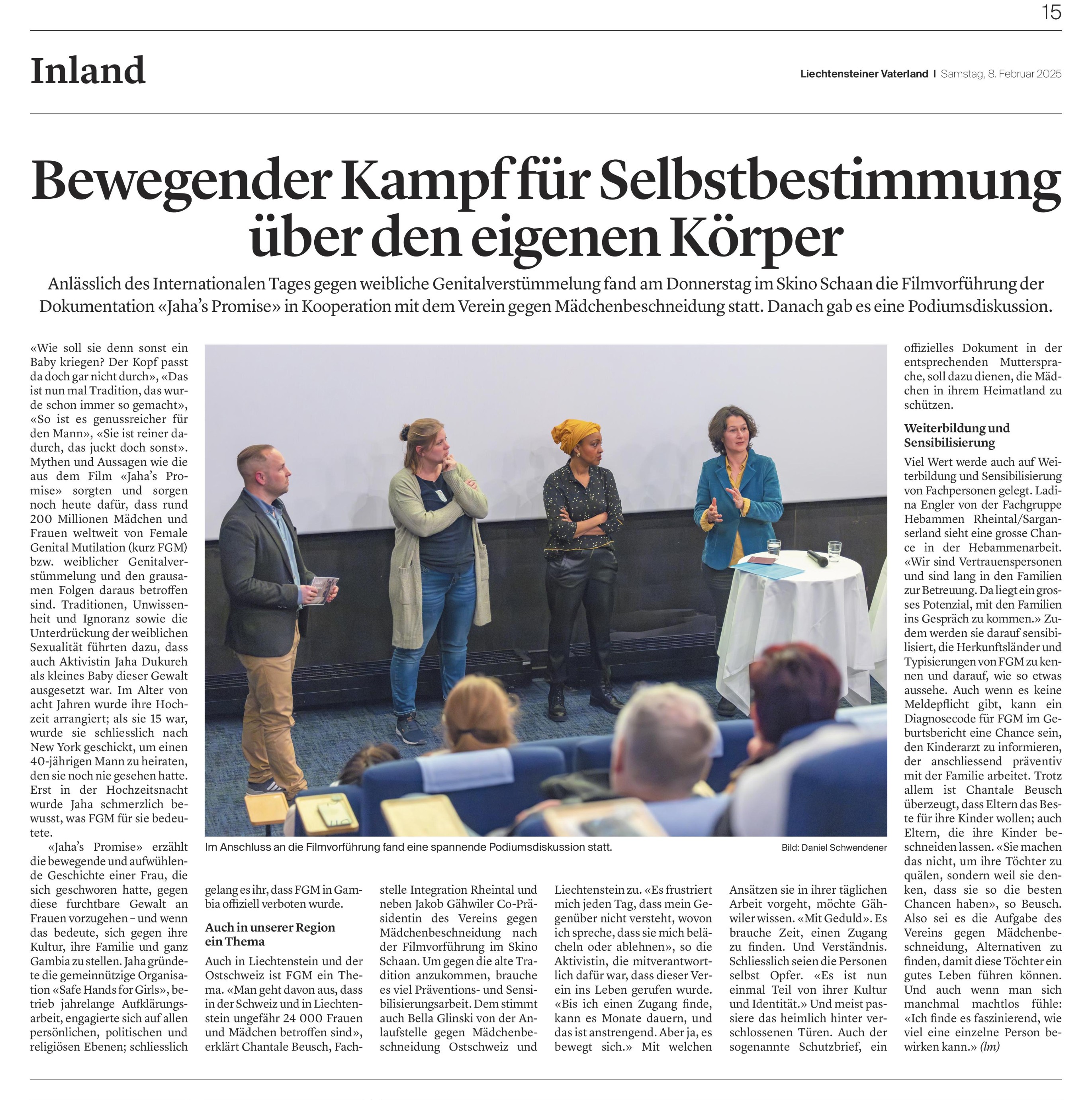 Wir freuen uns, wenn unsere Arbeit gesehen und geteilt wird. Im «Liechtensteiner Vaterland» wurde über uns im Beitrag «Bewegender Kampf für Selbstbestimmung über den eigenen Körper» geschrieben, wir danken für den Beitrag und die Unterstützung.